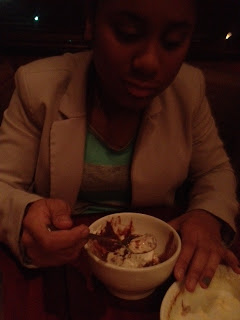 Dog Handler Deztiney going to town on a chocolate indulgence type thing.